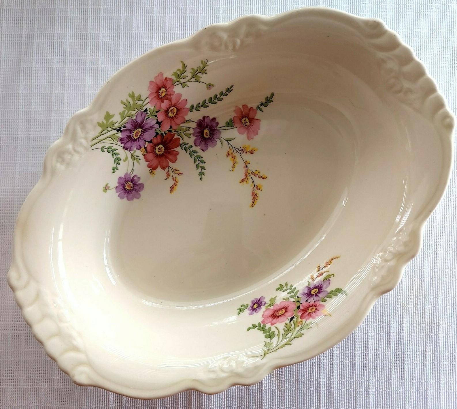 9 Homer Laughlin Virginia Rose Pink Purple Floral Oval Vegetable Bowl Ebay