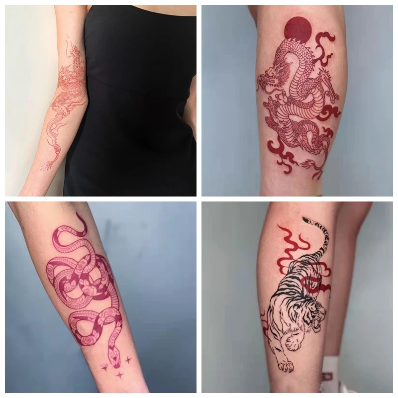 New Red Black Dragon Tatoo Sticker Waterproof Men And Women Tiger Snake Bird Flower Arm Temporary Fake Tattoo Art Fashion Tattoo Temporary Tattoos Aliexpress